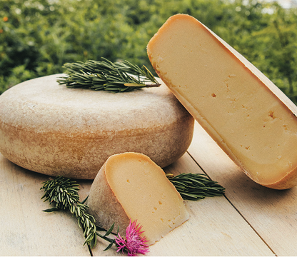 Finger Lakes Gold Reserve is a hard-aged goat cheese, aged for at least 300 days from Lively Run's original recipe. As it matures, its flavors deepen, revealing rich burnt sugar notes and a pronounced bone broth/umami essence. Honored as the 2019 ACS Competition class winner and ranked among the top 15 Best In Show cheeses, it pairs excellently with a Perfect Manhattan, cured meats, or aged balsamic vinegar.