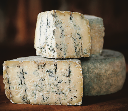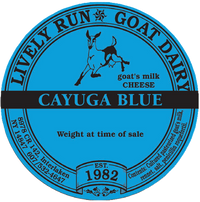 Cayuga Blue is a rare, natural-rind goat milk blue cheese with marbled blue mold as deep in color as the lake it was named after. It offers rich earthy and mushroom flavors with a hint of nutty sweetness. It pairs perfectly with off-dry Riesling, raspberry jam, and chocolate. Ideal for dishes featuring beef or mushrooms, its crumbly texture also makes it perfect for salads.